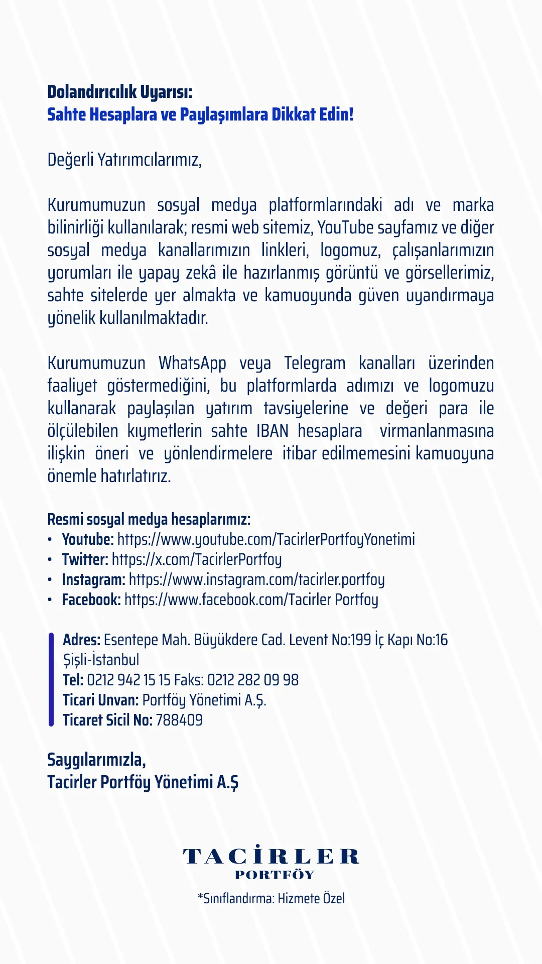 Türkiye’nin en büyük portföy yönetim şirketlerinden Tacirler Portföy Yönetimi A.Ş., Katılım Finans ilke ve standartlarına uygun yepyeni bir yatırım deneyimi sunuyor: Denge Katılım Fonu!